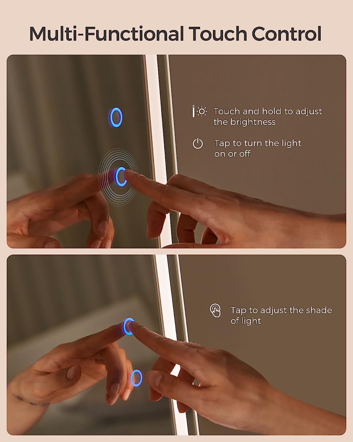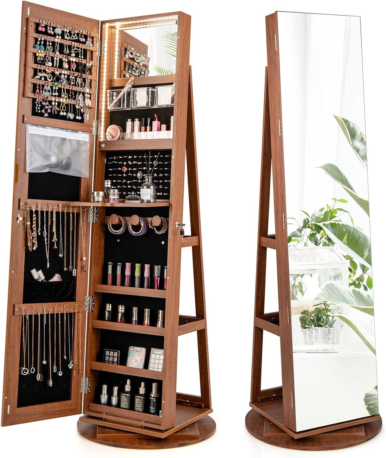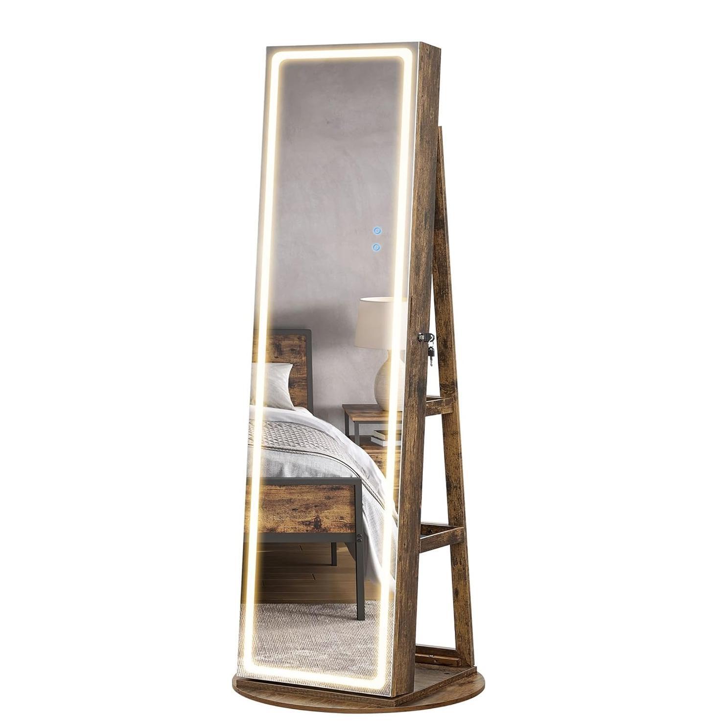 - [Full-Length Mirror with Adjustable LED Lights] This non-rotatable jewelry cabinet boasts a full-length mirror with dimmable LED lights that have 3 shades of light and a smart memory functionโyou can use the touch button to find the perfect lighting to check your look